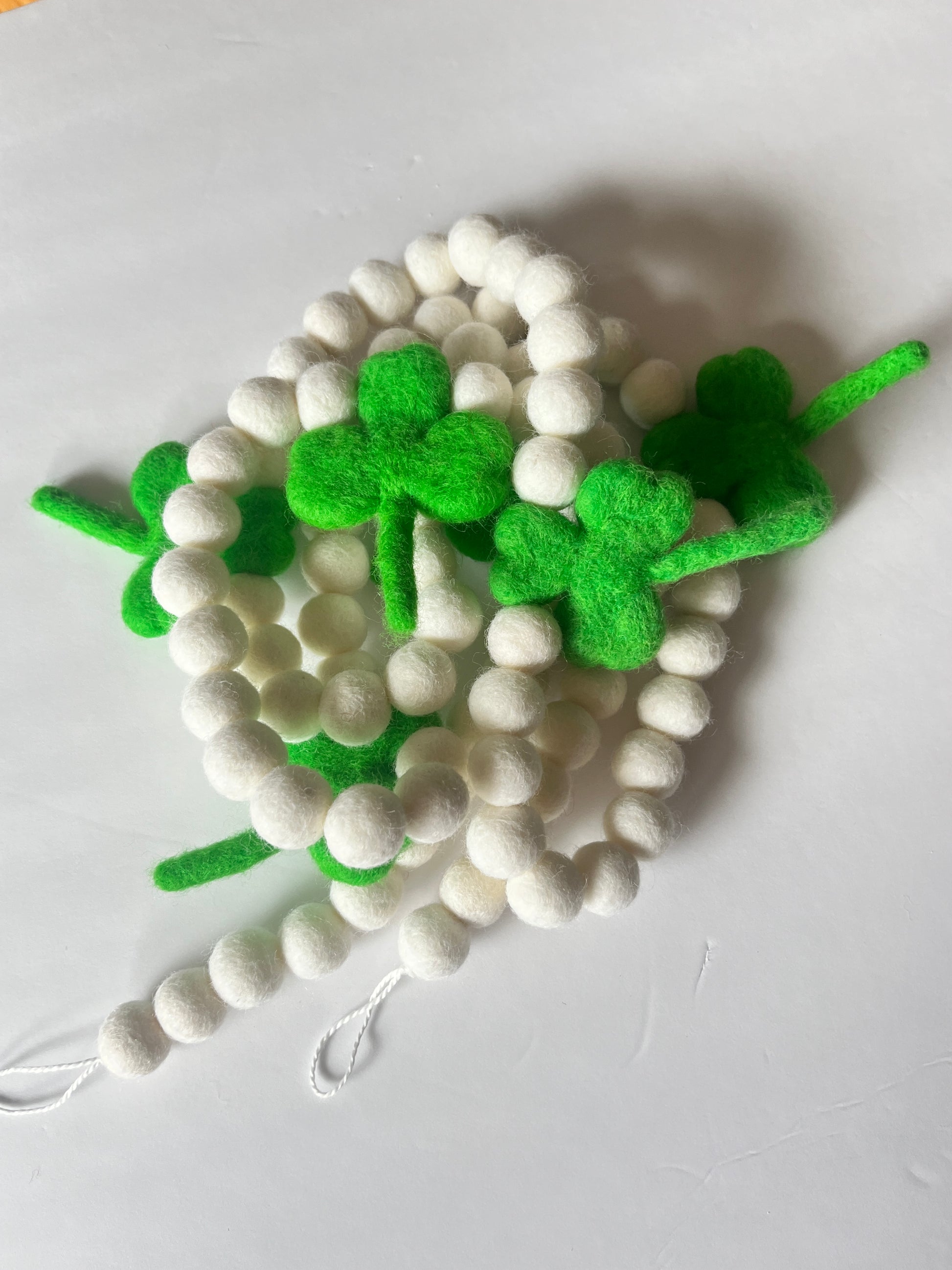 Get ready to celebrate St. Patrick's Day in style with our Felt Clover Garland! Measuring 5.5 feet in length, this garland features 6 green clovers and 1.5 cm white balls, making it the perfect decoration for your festivities. Feeling lucky? This garland will bring some fun and whimsy to your decor.
