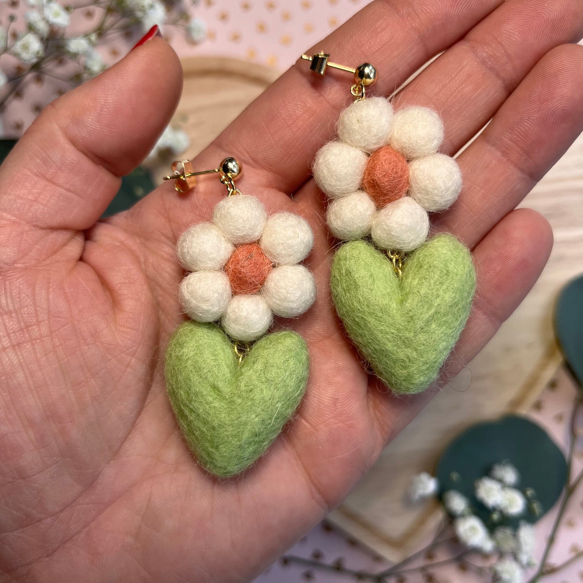 ๐ Add a little love to your look with these blooming heart earrings! Handmade from soft Merino wool, theyโre lightweight, vibrant, and perfect for making any outfit pop with charm. Whether it's Valentine's Day or just a "treat yourself" kind of day, these earrings have your heart covered!